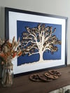 Created from an original photograph of a winter Oak tree, the design is cut into a thin poplar veneer before being fixed and mounted into the frame and on to a black or grey backing.